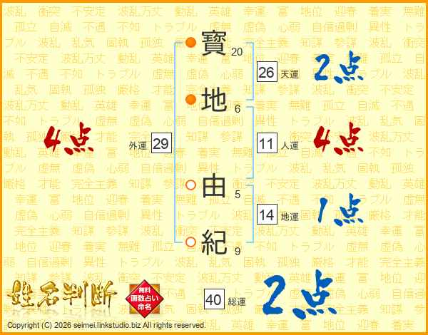 寳地由紀さんの人運は11画の4点!