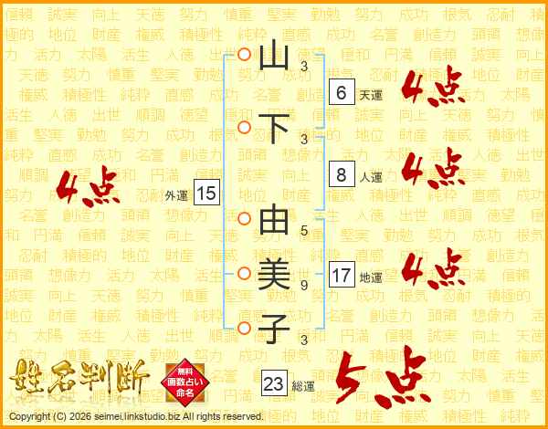 山下由美子さんの外運は15画の4点!