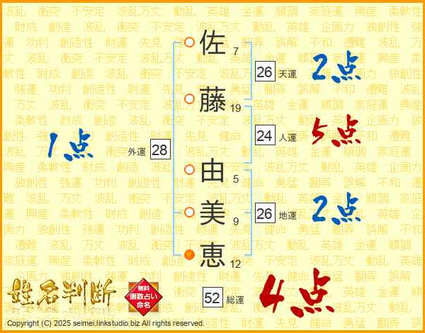 佐藤由美恵さんの総運は52画の4点!