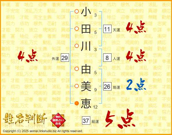 小田川由美恵さんの総運は37画の5点!