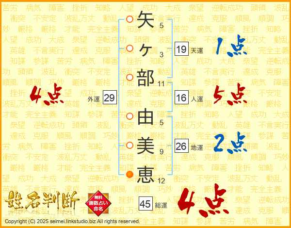 矢ヶ部由美恵さんの総運は45画の4点!