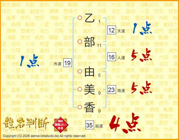 乙部由美香さんの天運は12画の1点!