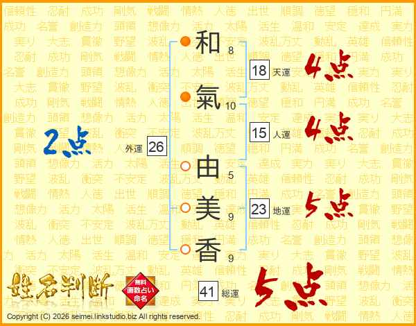 和(8画)氣(10画) 由(5画)美(9画)香(9画)