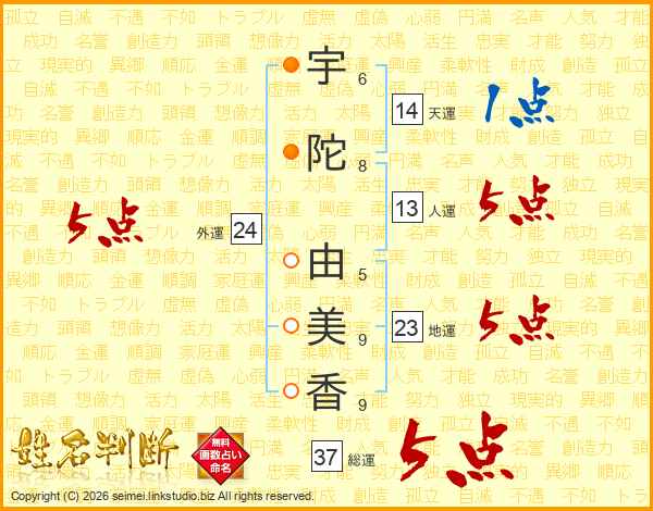 宇陀由美香さんの総運は37画の5点!