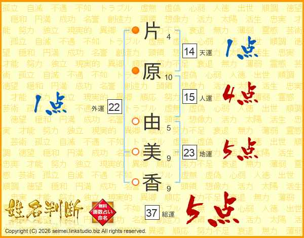 片(4画)原(10画) 由(5画)美(9画)香(9画)