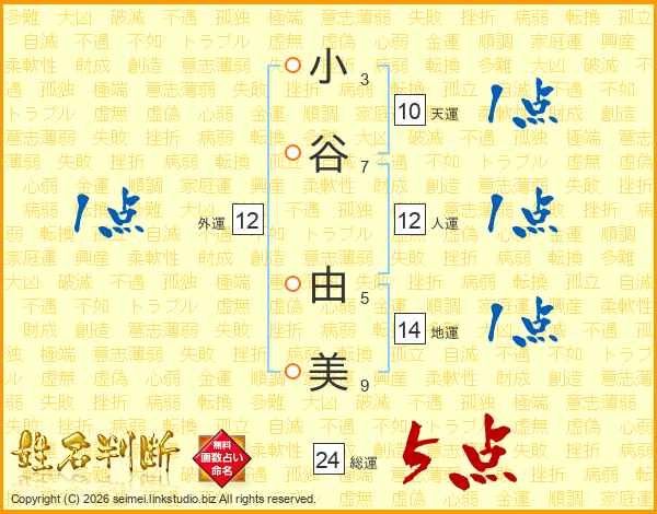 小谷由美さんの総運は24画の5点!