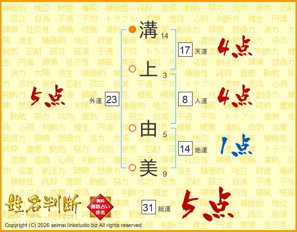 溝上由美さんの総運は31画の5点!