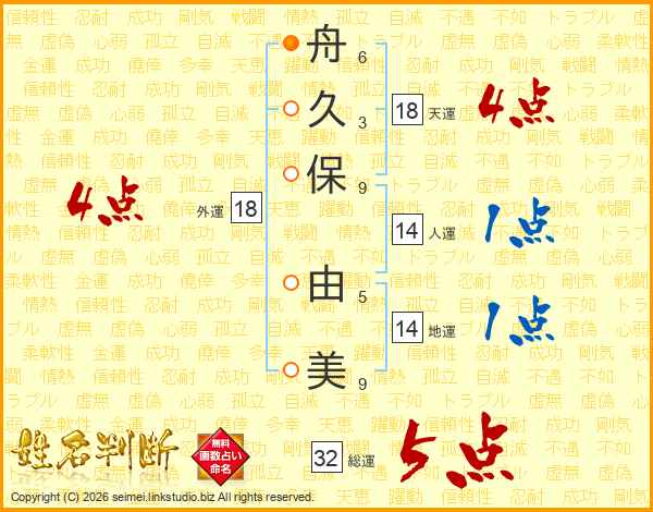 舟久保由美さんの総運は32画の5点!
