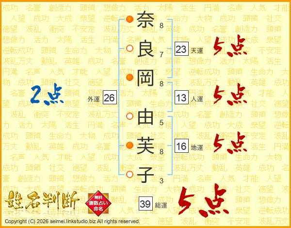 奈良岡由芙子さんの総運は39画の5点!