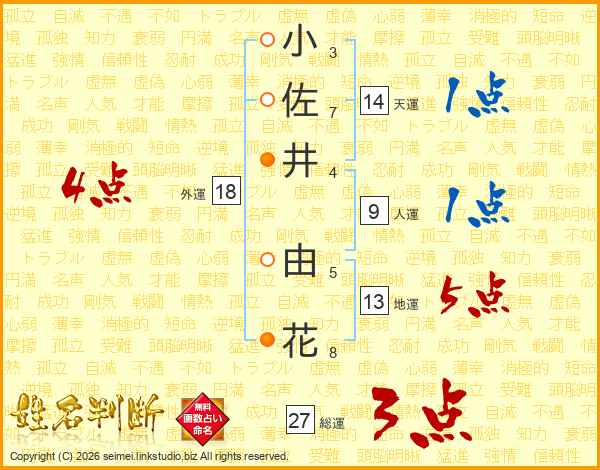 小佐井由花さんの外運は18画の4点!