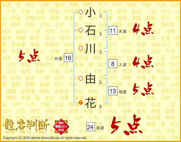 小(3画)石(5画)川(3画) 由(5画)花(8画)