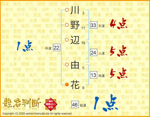 川野辺由花さんの総運は46画の1点!