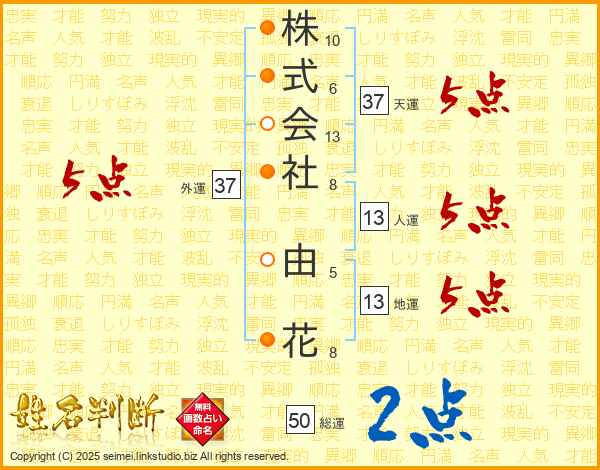 株(10画)式(6画)会(13画)社(8画) 由(5画)花(8画)