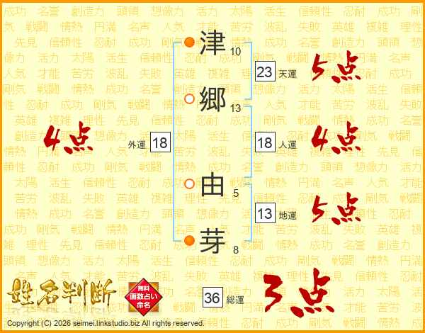津(10画)郷(13画) 由(5画)芽(8画)