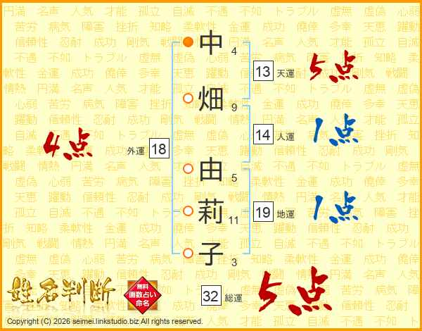 中畑由莉子さんの総運は32画の5点!