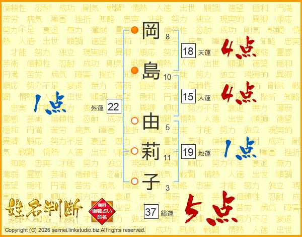 岡島由莉子さんの総運は37画の5点!