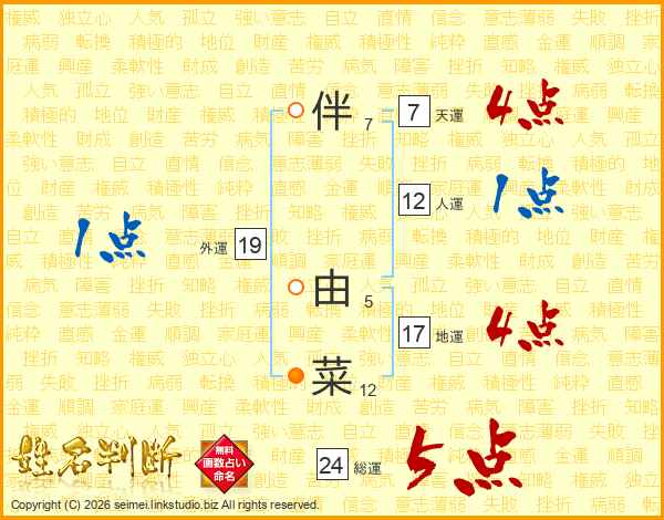 伴由菜さんの総運は24画の5点!