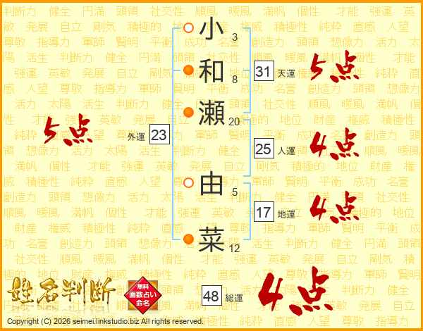小和瀬由菜さんの総運は48画の4点!