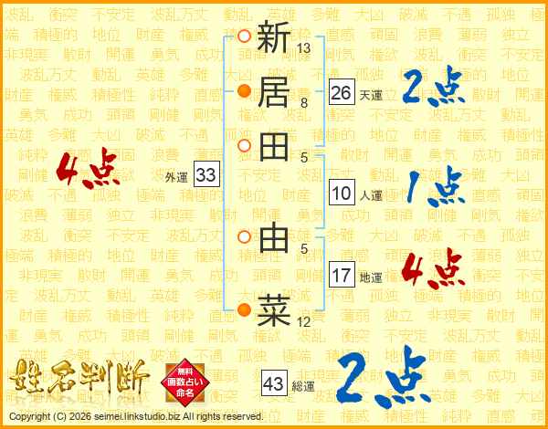 新居田由菜さんの天運は26画の2点!