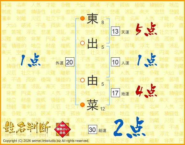 東出由菜さんの総運は30画の2点!