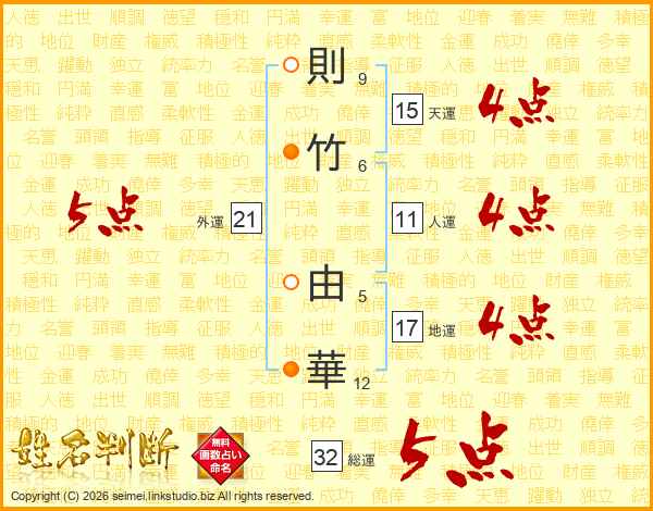 則竹由華さんの総運は32画の5点!