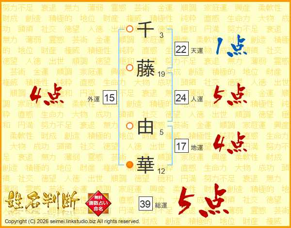千藤由華さんの総運は39画の5点!