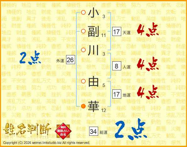 小副川由華さんの天運は17画の4点!