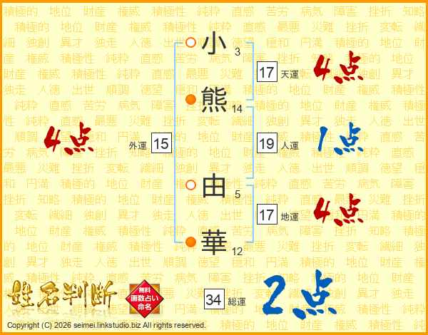 小熊由華さんの天運は17画の4点!