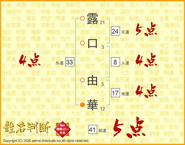 露口由華さんの総運は41画の5点!