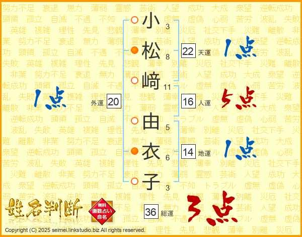 小(3画)松(8画)﨑(11画) 由(5画)衣(6画)子(3画)