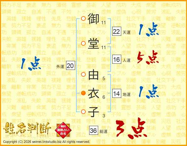 御堂由衣子さんの人運は16画の5点!