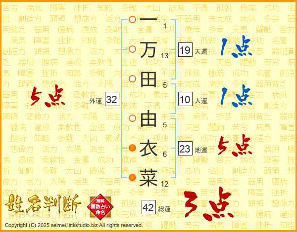 一万田由衣菜さんの外運は32画の5点!