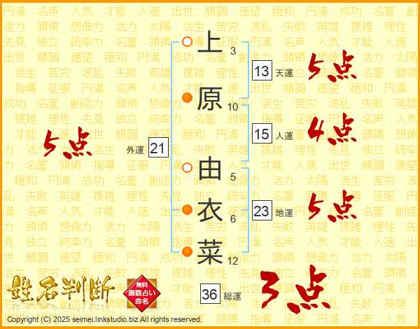 上原由衣菜さんの総運は36画の3点!