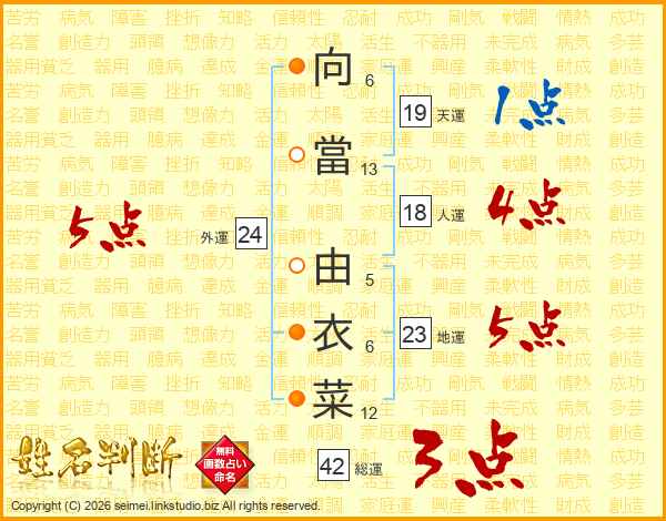 向當由衣菜さんの地運は23画の5点!