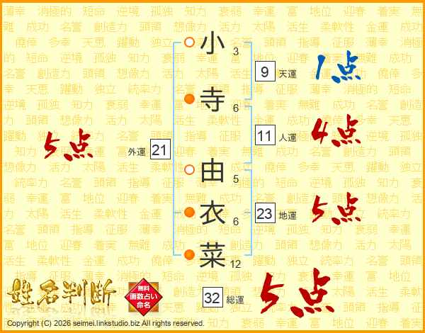 小寺由衣菜さんの総運は32画の5点!