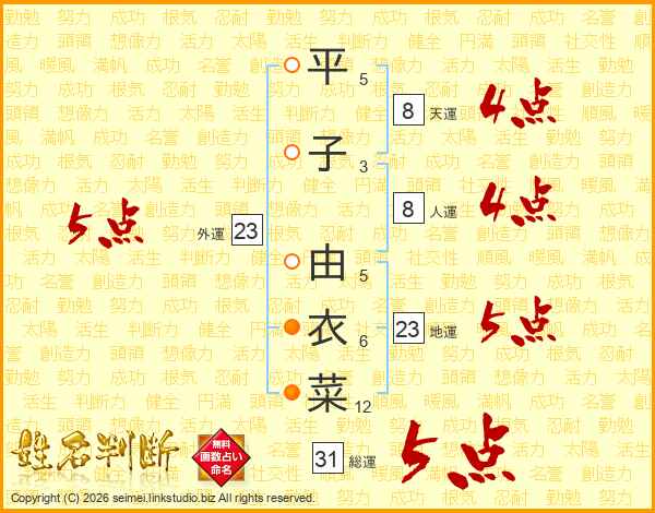 平子由衣菜さんの外運は23画の5点!