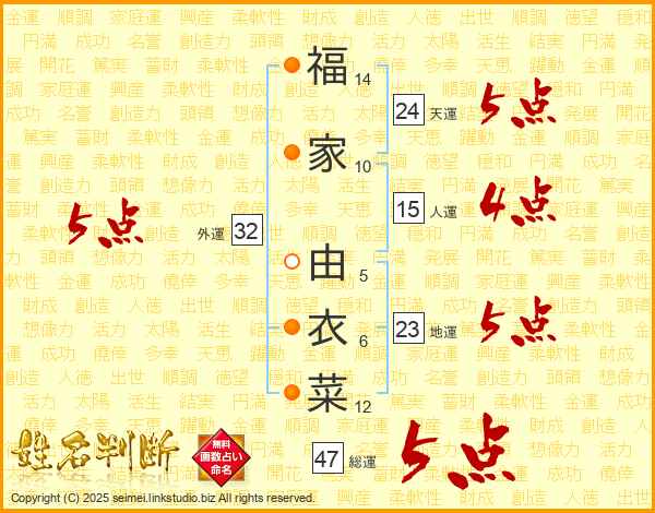 福家由衣菜さんの総運は47画の5点!