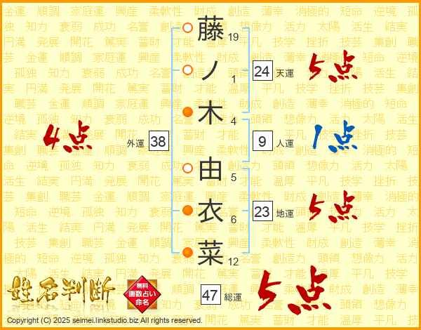 藤ノ木由衣菜さんの総運は47画の5点!