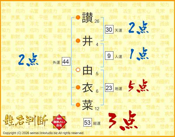讃井由衣菜さんの外運は44画の2点!