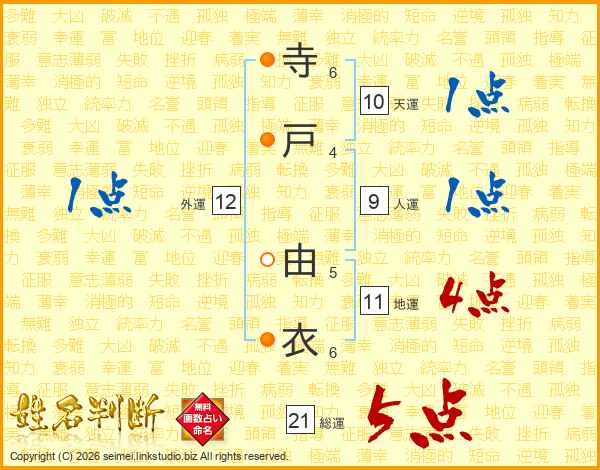 寺(6画)戸(4画) 由(5画)衣(6画)
