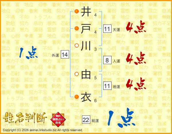 井戸川由衣さんの地運は11画の4点!