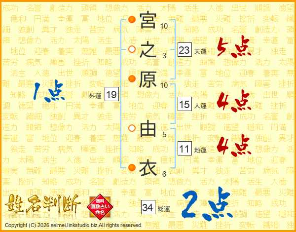 宮之原由衣さんの天運は23画の5点!