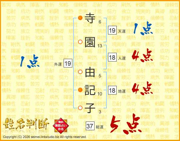 寺園由記子さんの総運は37画の5点!
