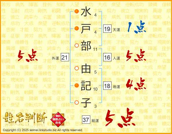 水(4画)戸(4画)部(11画) 由(5画)記(10画)子(3画)