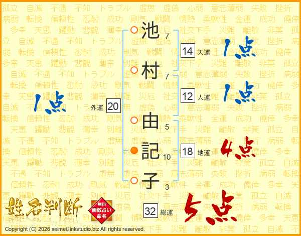 池(7画)村(7画) 由(5画)記(10画)子(3画)