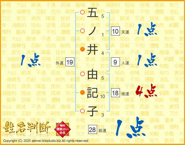 五ノ井由記子さんの総運は28画の1点!