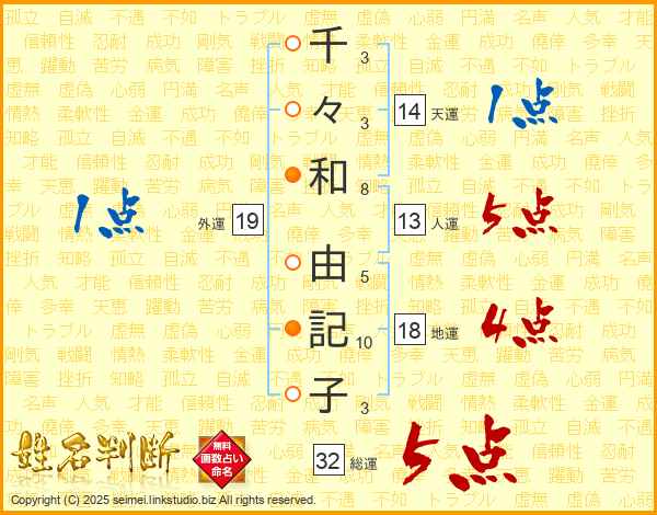 千々和由記子さんの総運は32画の5点!