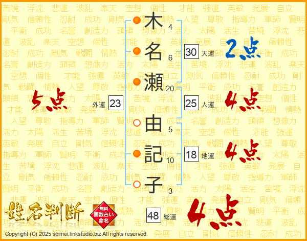 木名瀬由記子さんの人運は25画の4点!