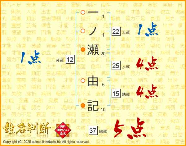 一(1画)ノ(1画)瀬(20画) 由(5画)記(10画)