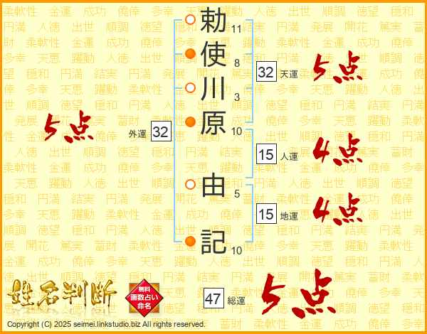 勅使川原由記さんの外運は32画の5点!